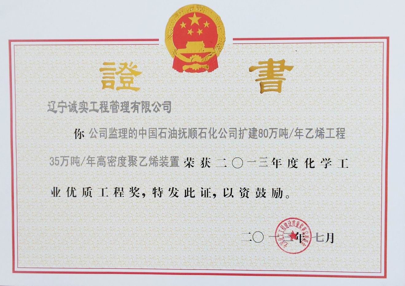 2013年化學工業(yè)優(yōu)質(zhì)工程獎(撫順石化擴建)