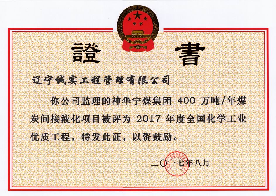 2017年全國化學(xué)工業(yè)優(yōu)質(zhì)工程(神華...