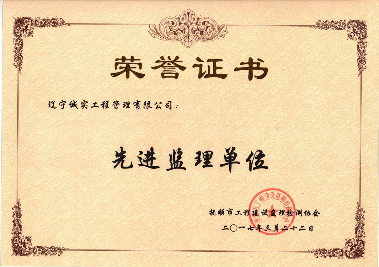 2017年撫順市先進(jìn)監(jiān)理單位