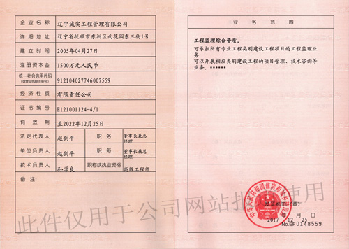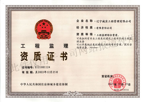 2017年12月25日《中華人民共和國住房和城鄉(xiāng)建設(shè)部公告第1783》中發(fā)布了題為《建設(shè)部關(guān)于核準(zhǔn)2017年度第十四批建設(shè)工程企業(yè)資質(zhì)資格名單的公告》,自此,我單位單位由過去的五項甲級工程監(jiān)理資質(zhì)晉升為“工程監(jiān)理綜合資質(zhì)”。這標(biāo)志著我公司一直持續(xù)保持著良好、穩(wěn)步的發(fā)展勢頭,朝著項目管理公司轉(zhuǎn)型的路上不斷挺進(jìn)。成績的取得,不僅凝結(jié)了公司領(lǐng)導(dǎo)層的心愿與艱辛,更是全體員工矢志不渝的追求和不懈努力的體現(xiàn)。